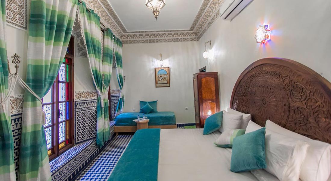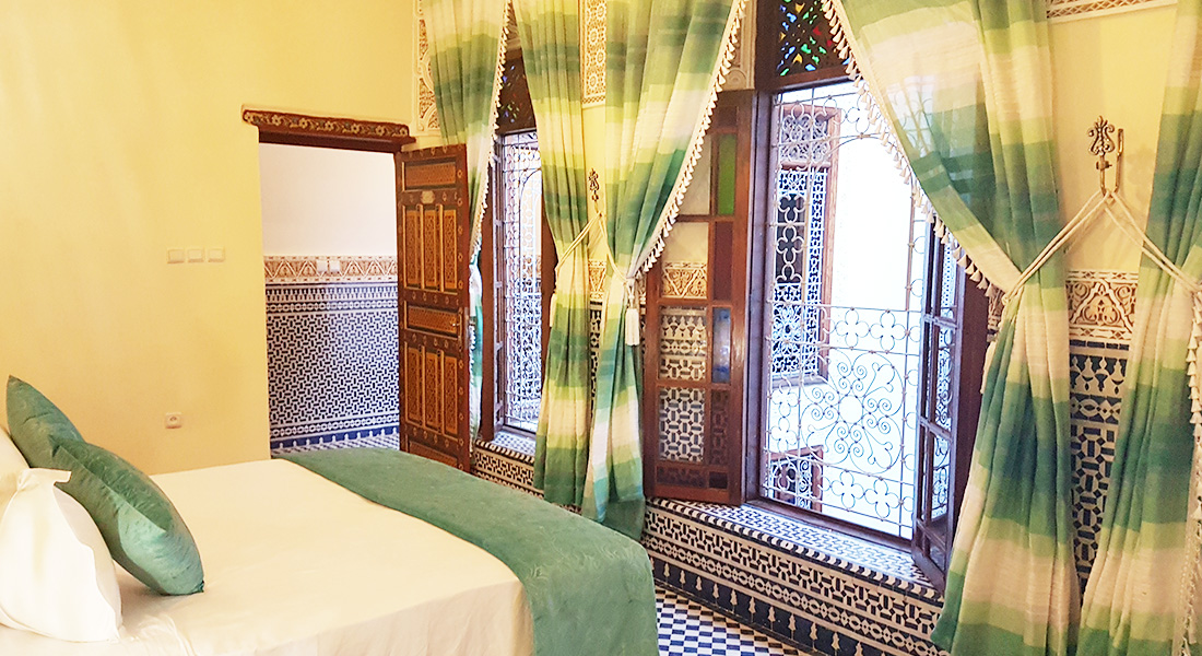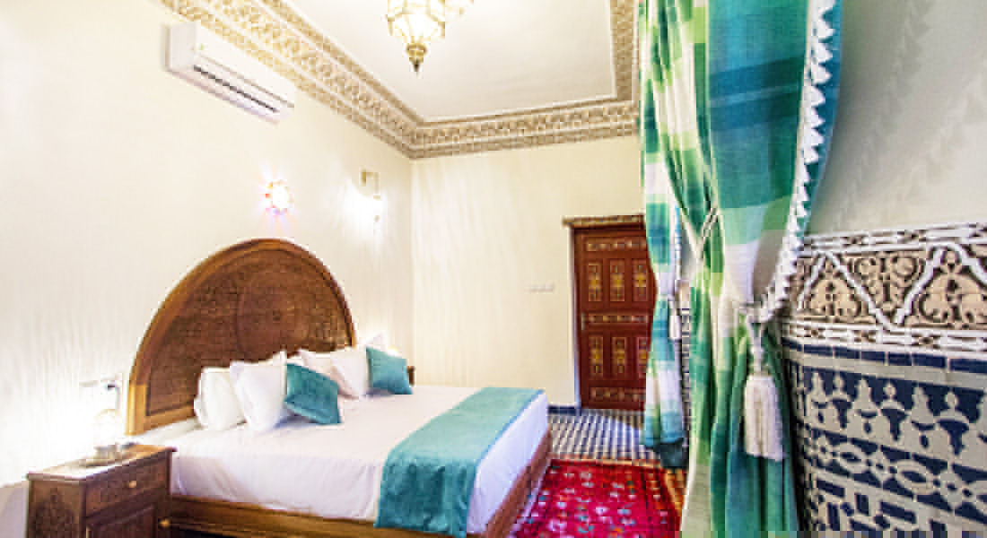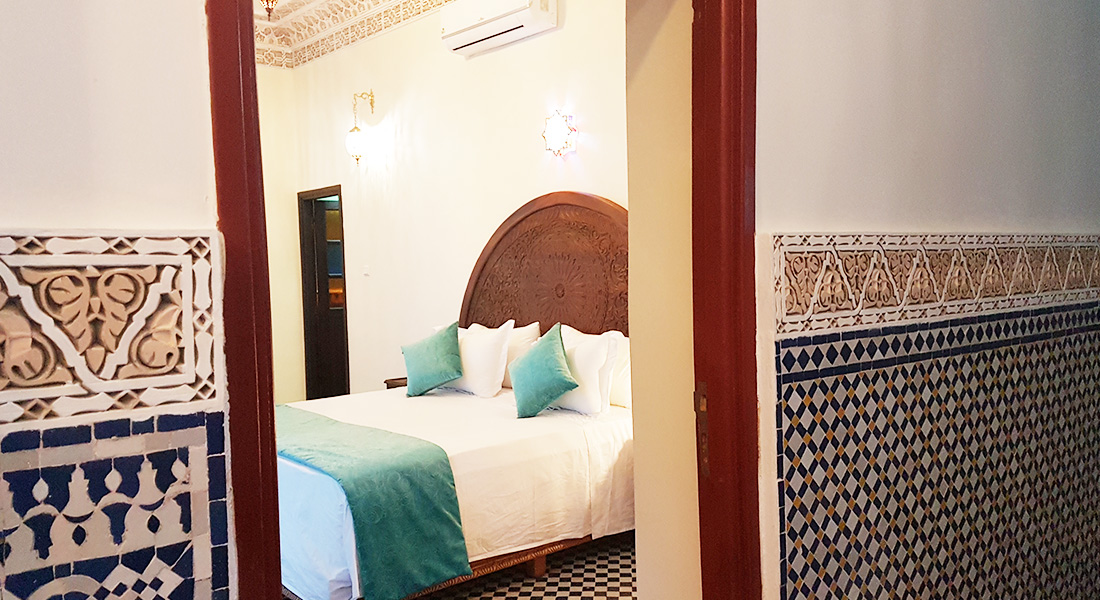 Superior room Azrou is located on the first floor and look onto the patio. This room is equipped with a king size double bed and privative bathroom with shower and toilet. Superior room can accommodate maximum 4 adults. The Moroccan breakfast is included.