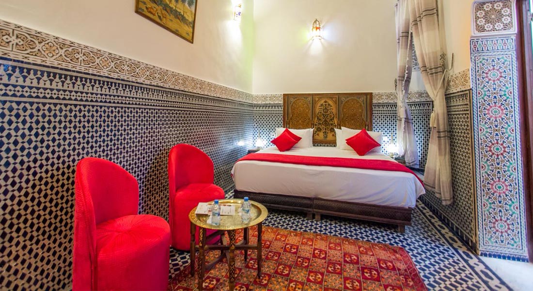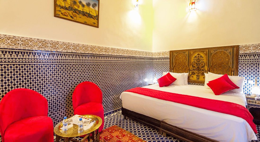 Suite Merzouga is located in the patio level. It’s equipped with a king size double bed and privative bathroom with shower and toilet. Suite can accommodate maximum 4 adults.